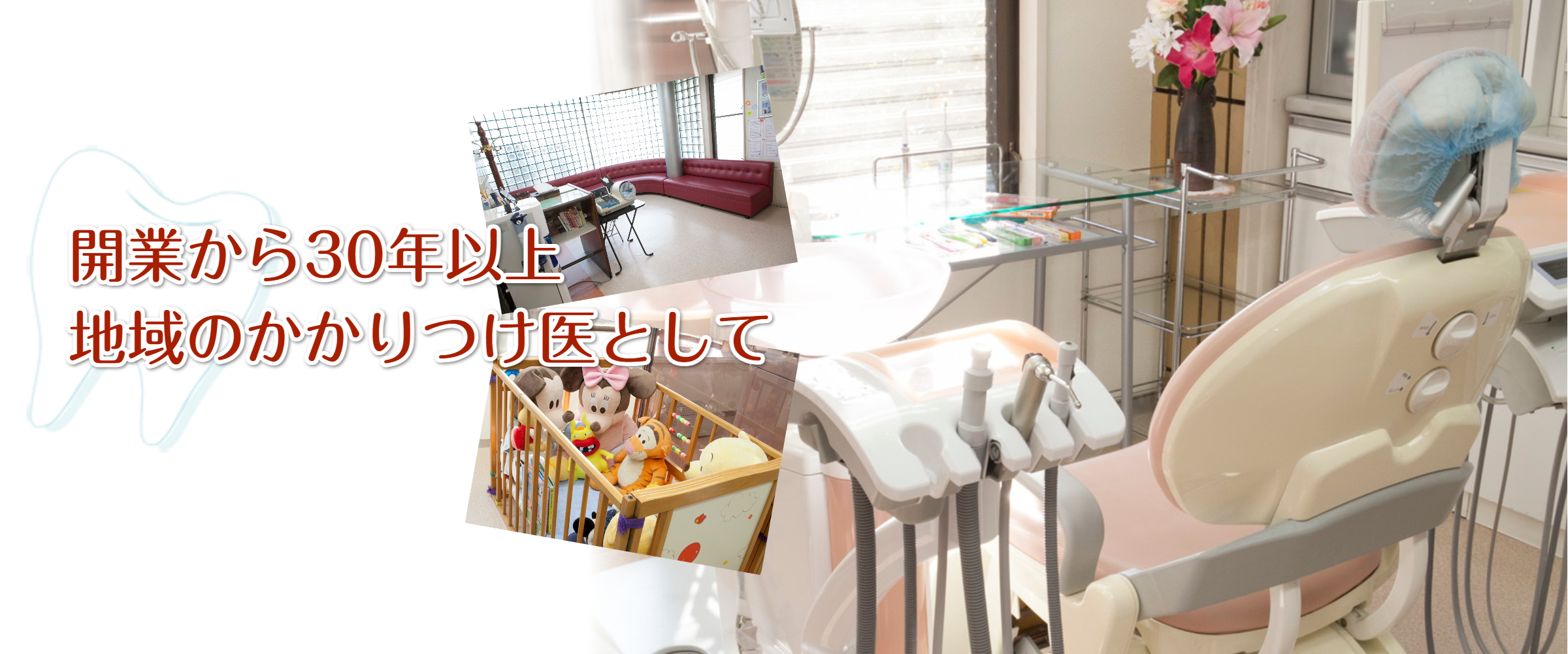 地域の歯医者として開業以来、40年以上の時が経ちました。ご家族ぐるみでお付き合いのある患者さまも多く、憩いの場のような穏やかな雰囲気の歯科医院です。