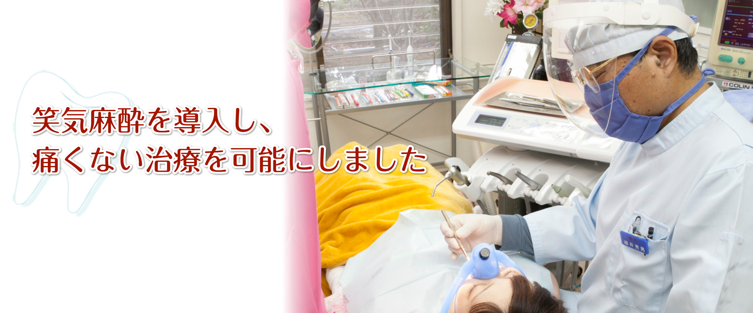 笑気麻酔を導入したり、表面麻酔をした上で、最も細い針を使った電動式の麻酔注射器を使用するなど、なるべく痛みのない治療を心がけています。